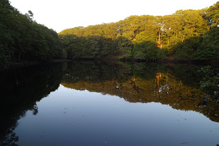 It led us a bit deeper in until we started downhill and came upon a small reservoir formed by a dam.